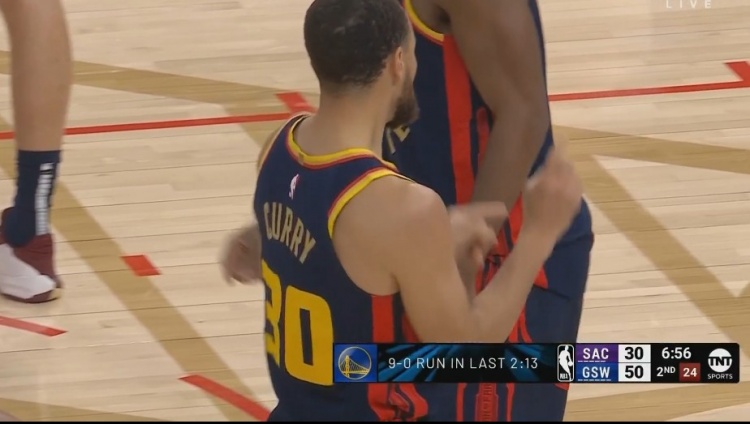 - 手感都給隊友分走了?庫里弧頂晃開防守 三分再鐵一個