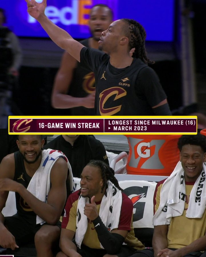 轉(zhuǎn)播方給出數(shù)據(jù),騎士的16連勝也是自2023年3月的雄鹿以來,聯(lián)盟最長的連勝紀(jì)錄。