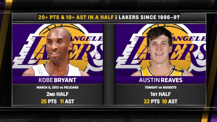 - 里夫斯半場至少砍20分10助 96-97賽季以來隊史第二人&比肩科比!
