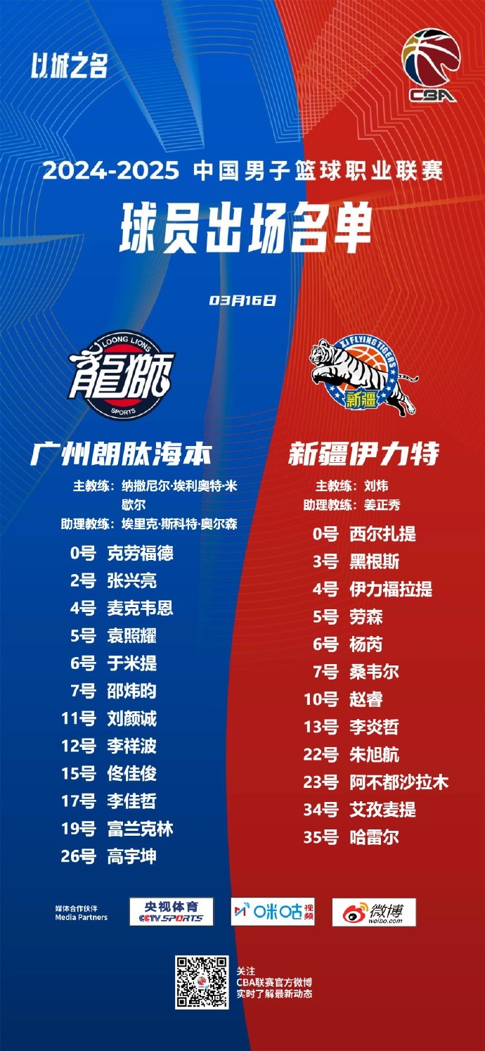 新疆隊(duì):西爾扎提、黑根斯、伊力福拉提、勞森、楊芮、桑韋爾、趙睿、李炎哲、朱旭航、阿不都沙拉木、艾孜麥提、哈雷爾。
