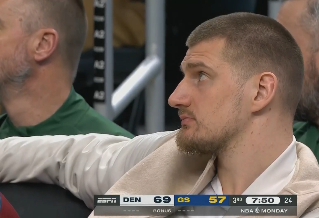舒服~殘陣掘金領(lǐng)先勇士?jī)晌粩?shù) 場(chǎng)下的約基奇一臉淡定~