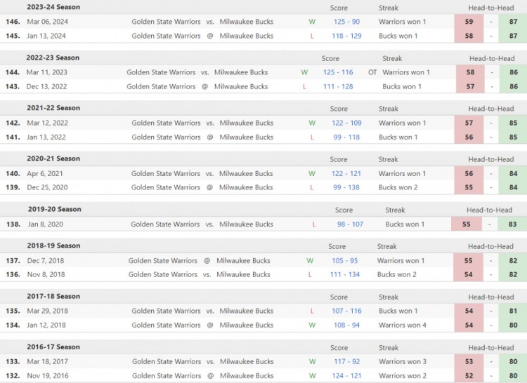 - 勇士本賽季雙殺雄鹿 隊(duì)史上一次雙殺對手還是在2016-17賽季