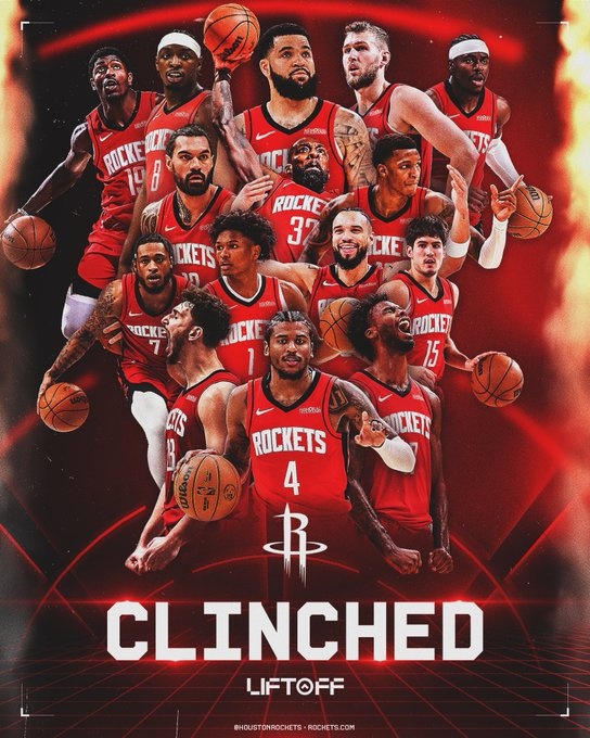 此戰(zhàn)之后,火箭的戰(zhàn)績(jī)來(lái)到了45勝25負(fù),本賽季他們至少能打附加賽,為此火箭官推專門制作了海報(bào),慶祝這一時(shí)刻。