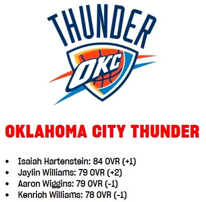 3月21日訊 今天,NBA 2K更新了球員的能力值,雷霆隊的變化情況如下: