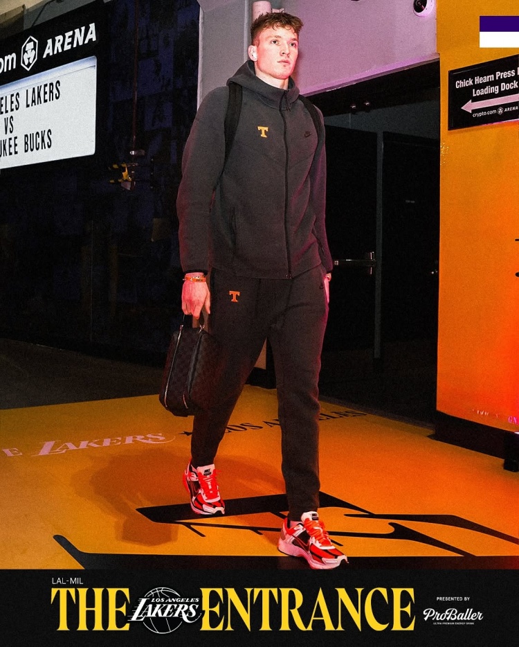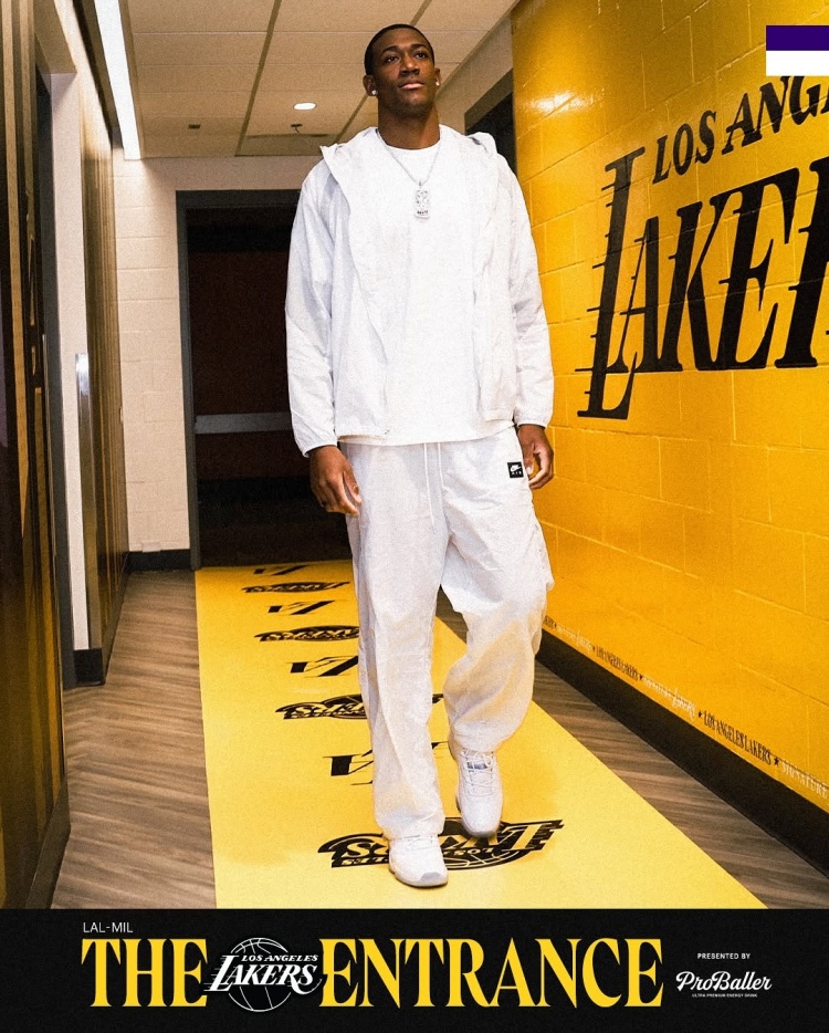 湖人眾將入場(chǎng)穿搭:文森特墨鏡配項(xiàng)鏈 布朗尼蜘蛛連帽衫