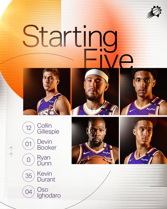 太陽:吉萊斯皮、布克、鄧恩、杜蘭特、伊戈達(dá)羅。