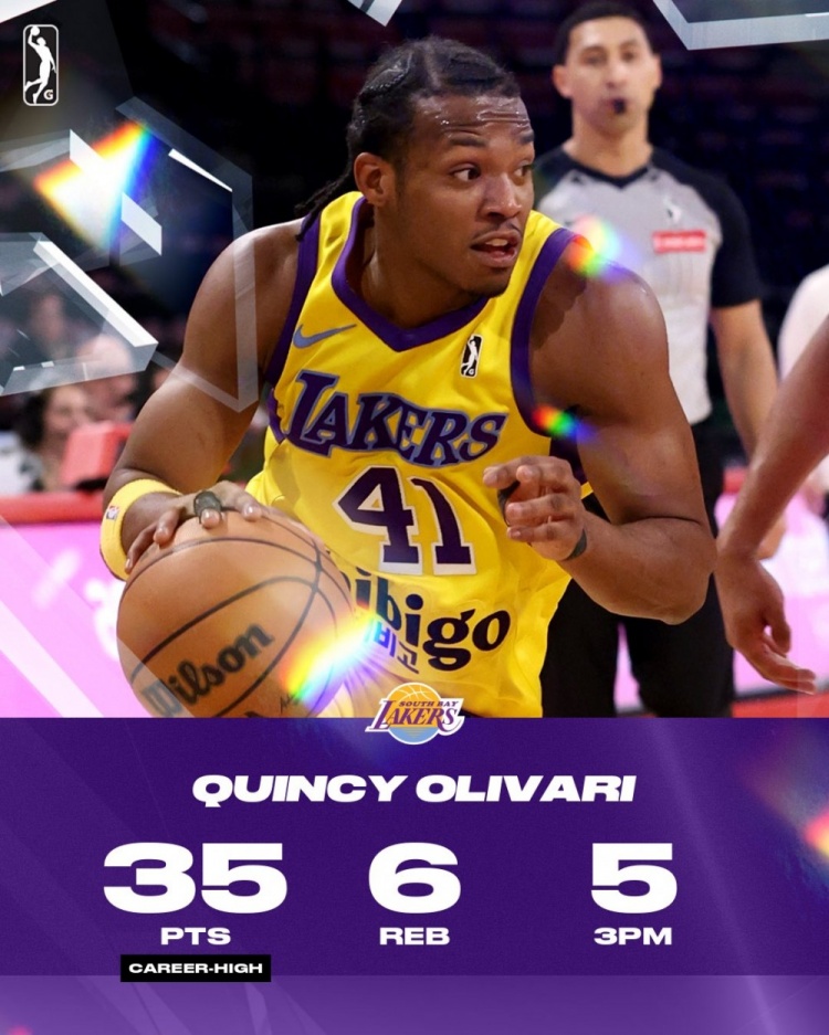 此役,南灣湖人后衛(wèi)奧利瓦里在進(jìn)攻端火力全開,他出戰(zhàn)36分鐘,19投9中,三分11投5中,罰球9罰全中,砍下35分6籃板2助攻的數(shù)據(jù)。