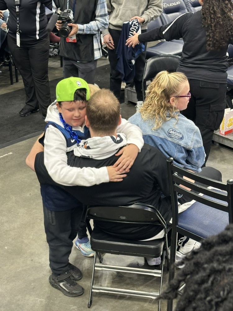 本場比賽,森林狼老將喬·英格爾斯12歲的自閉癥兒子雅各布,在家人的陪同下來到了現(xiàn)場觀看父親的比賽。森林狼主教練貼心地將英格爾斯安排進了首發(fā),這也是自2021-22賽季,英格爾斯首次首發(fā),當(dāng)時他還在爵士隊。