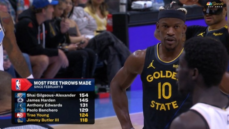 截止日以來罰球總數(shù)Top6:亞歷山大154次力壓哈登 巴特勒第六