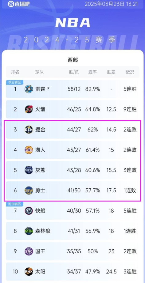 ??火箭9連勝穩(wěn)居西區(qū)第2 掘湖熊勇都輸球 快船森林狼追擊直通區(qū)
