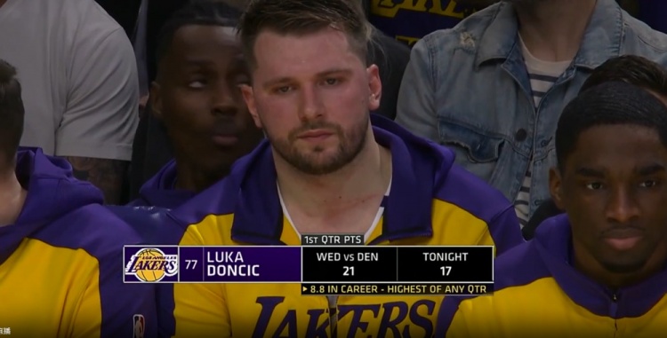 - 東契奇火力全開(kāi)半場(chǎng)7三分爆砍29分 詹姆斯找狀態(tài) 湖人落后公牛3分