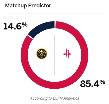 賽前ESPN給出了兩隊本場比賽的勝率:火箭85.4%、掘金14.6%。