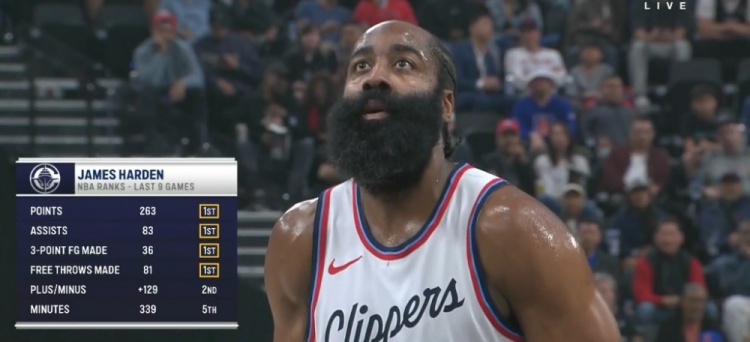 真扛??!過去9場哈登總得分、助攻、三分、罰球命中皆聯(lián)盟第一