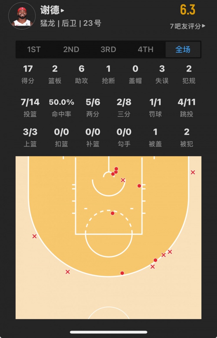 猛龍45號秀 賈馬爾-謝德 登場27.4分鐘
