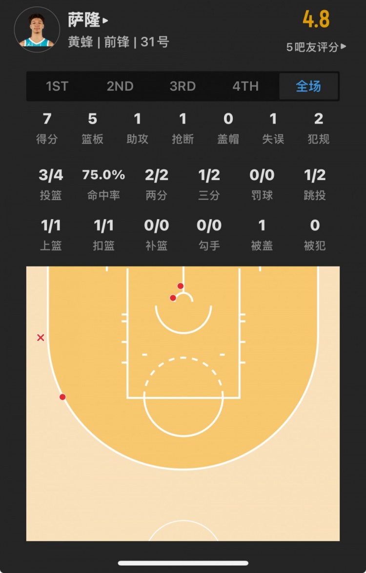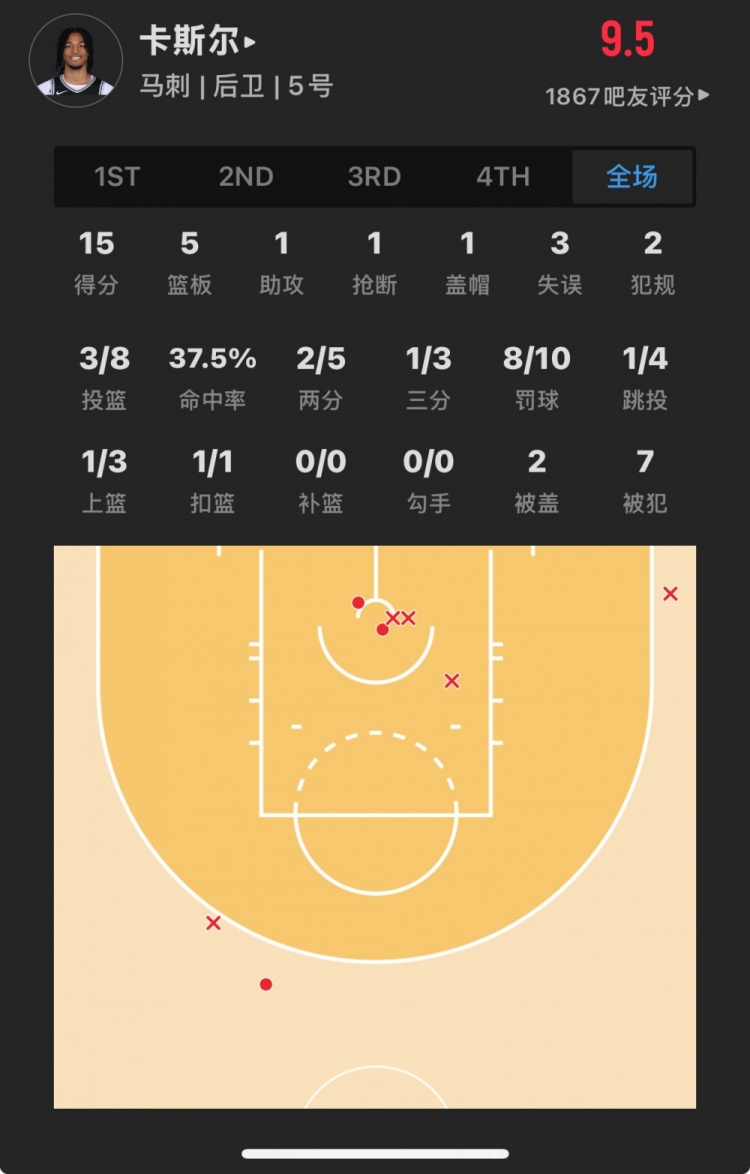 馬刺4號秀 斯蒂芬-卡斯爾 登場19.8分鐘