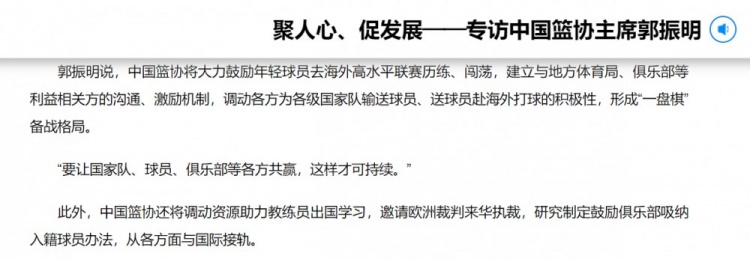 3月25日訊 籃協(xié)主席郭振明近日接受了新華社的專訪,談到了多個(gè)話題。其中一點(diǎn),他表示中國(guó)籃協(xié)將大力鼓勵(lì)年輕球員去海外高水平聯(lián)賽歷練、闖蕩。