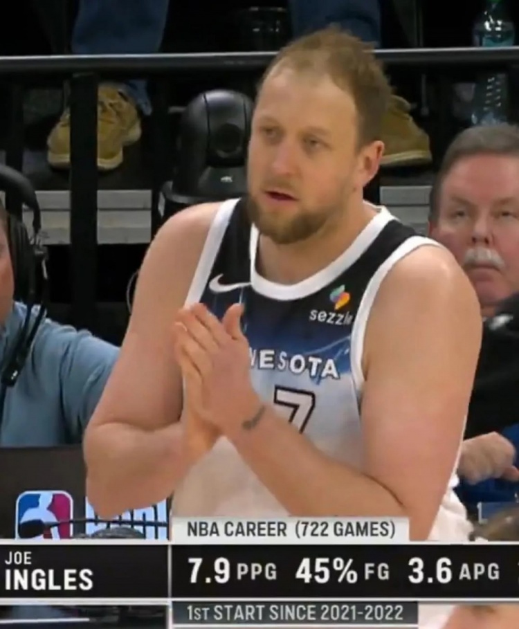 英格爾斯的表現(xiàn)并不算很出色,在6分鐘內(nèi)他3投0中,沒有得分,只有1次助攻。但沒有人會(huì)苛責(zé)他,恰恰相反,一度因?yàn)?連敗而士氣低迷的隊(duì)友們,在他的感召下重燃斗志。他下場(chǎng)的時(shí)候比分是14:13,之后他沒有再次上場(chǎng),森林狼最終狂勝鵜鶘41分。