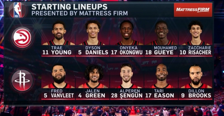 老鷹首發(fā):特雷-楊、丹尼爾斯、奧孔武、默罕默德-蓋耶、里薩謝。