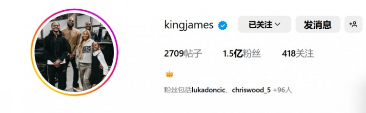 換頭像挺勤!詹姆斯再次更換IG頭像 這次換成了一家五口全家福