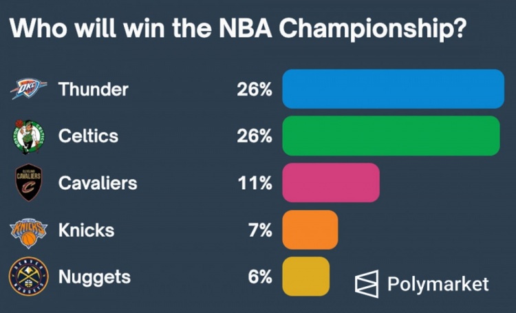 美媒預(yù)測奪冠概率:雷霆&綠軍皆26%最高 騎士/尼克斯/掘金列3-5
