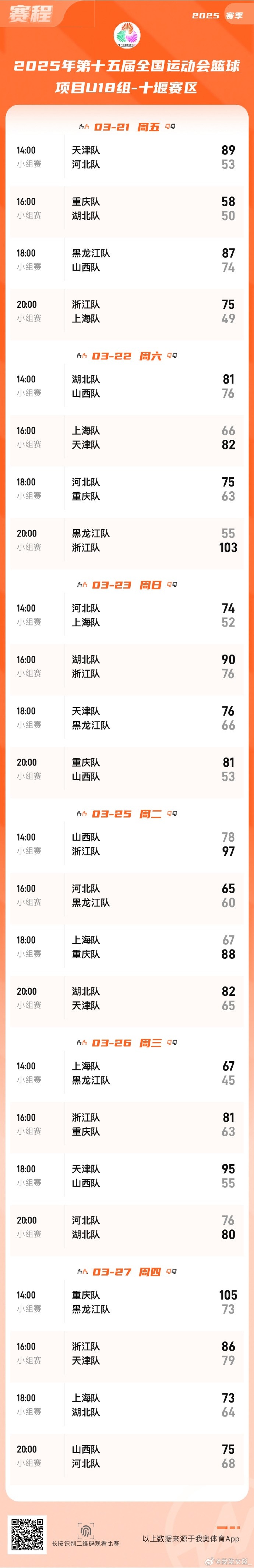 【湖北、重慶、浙江U18女籃挺進(jìn)決賽圈】24場(chǎng)全運(yùn)會(huì)U18女籃資格賽昨晚在湖北十堰全部落下帷幕,最終湖北、重慶、浙江U18女籃成功突圍,昂首挺進(jìn)“十五運(yùn)”決賽圈!