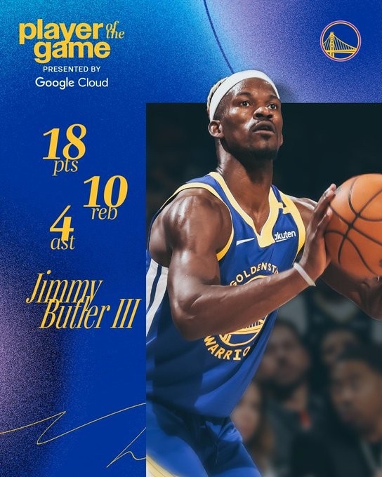 賽后勇士官方發(fā)布數(shù)據(jù)海報,將巴特勒評為本場最佳球員。