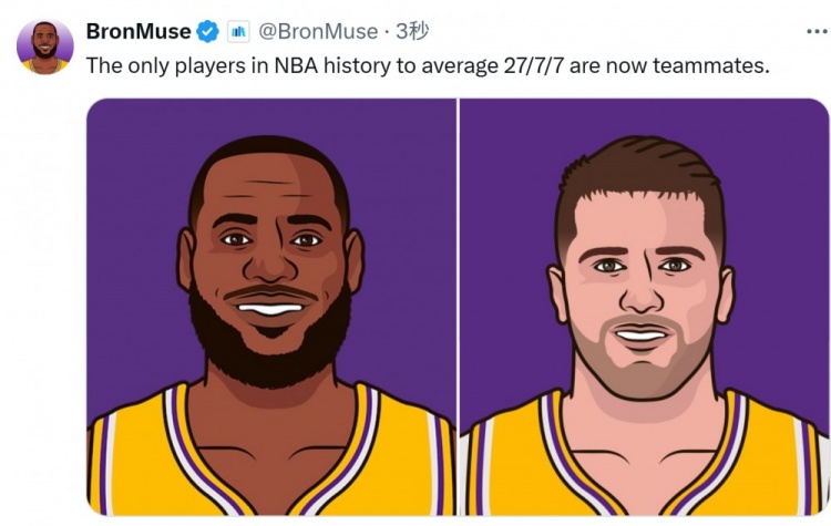 歷史唯二!美媒:詹姆斯&東契奇生涯場均至少27分7板7助 如今聯(lián)手