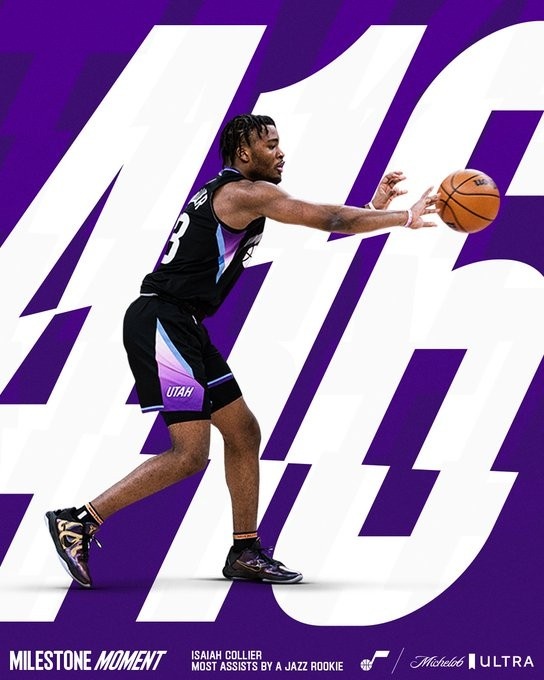 第三節(jié)科利爾送出新秀賽季第416次助攻,打破了斯托克頓保持了40年的爵士新秀單賽季助攻紀(jì)錄(415)次。