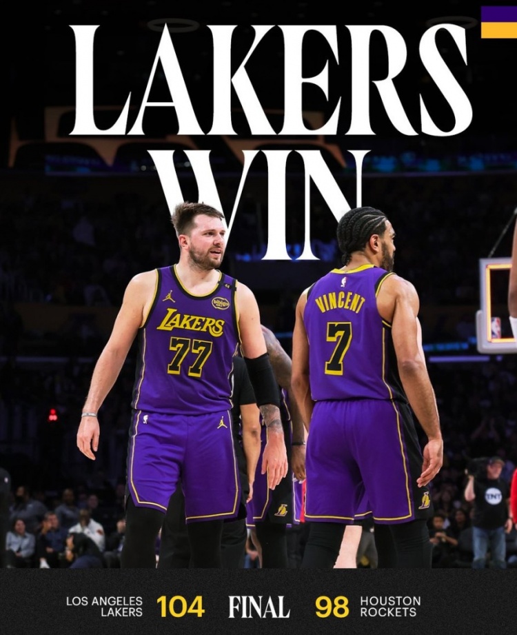 賽后,湖人官方曬出贏球海報,東契奇和文森特榮登封面。