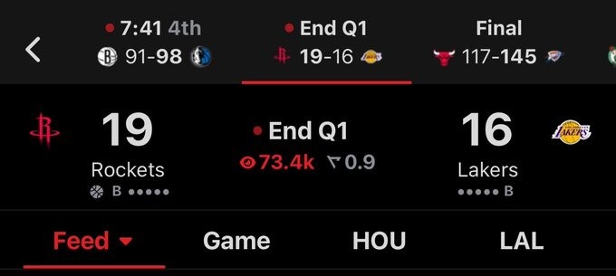 4月1日訊 湖人主場迎戰(zhàn)火箭,首節(jié)16-19落后。