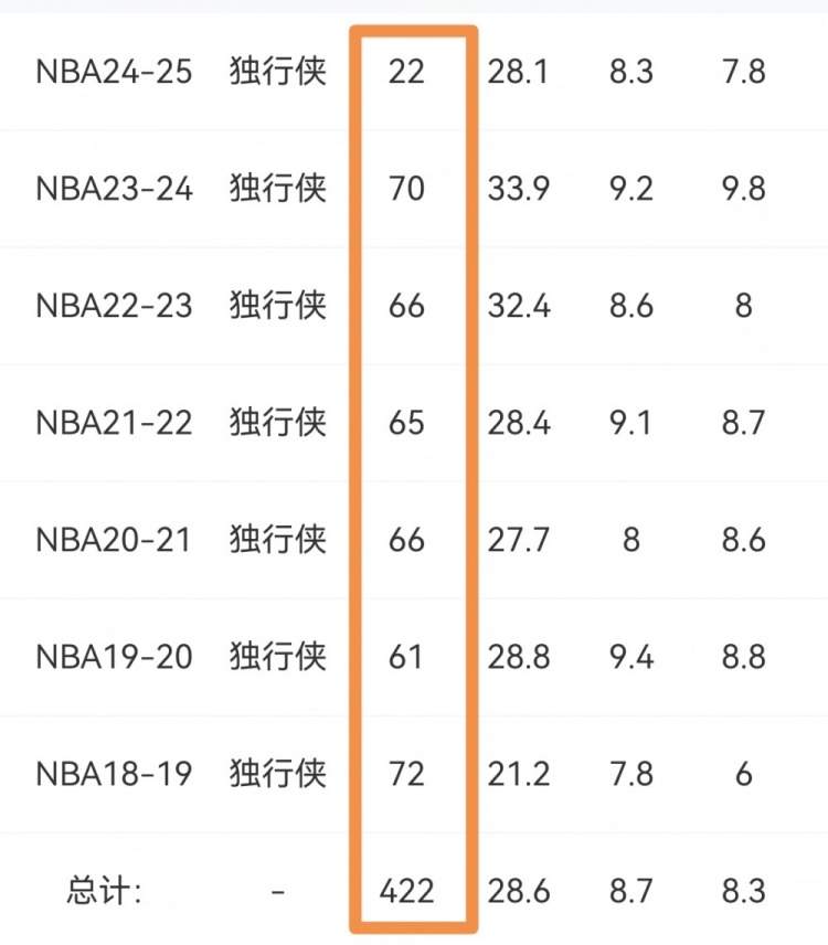 注:19-20賽季因疫情縮水獨(dú)行俠共打了75場(chǎng) 東契奇缺席14場(chǎng)