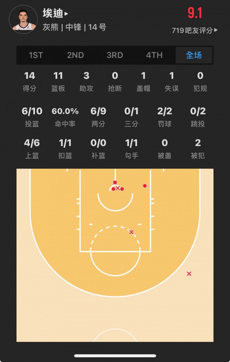 灰熊9號(hào)秀 扎克-埃迪 登場(chǎng)18.6分鐘