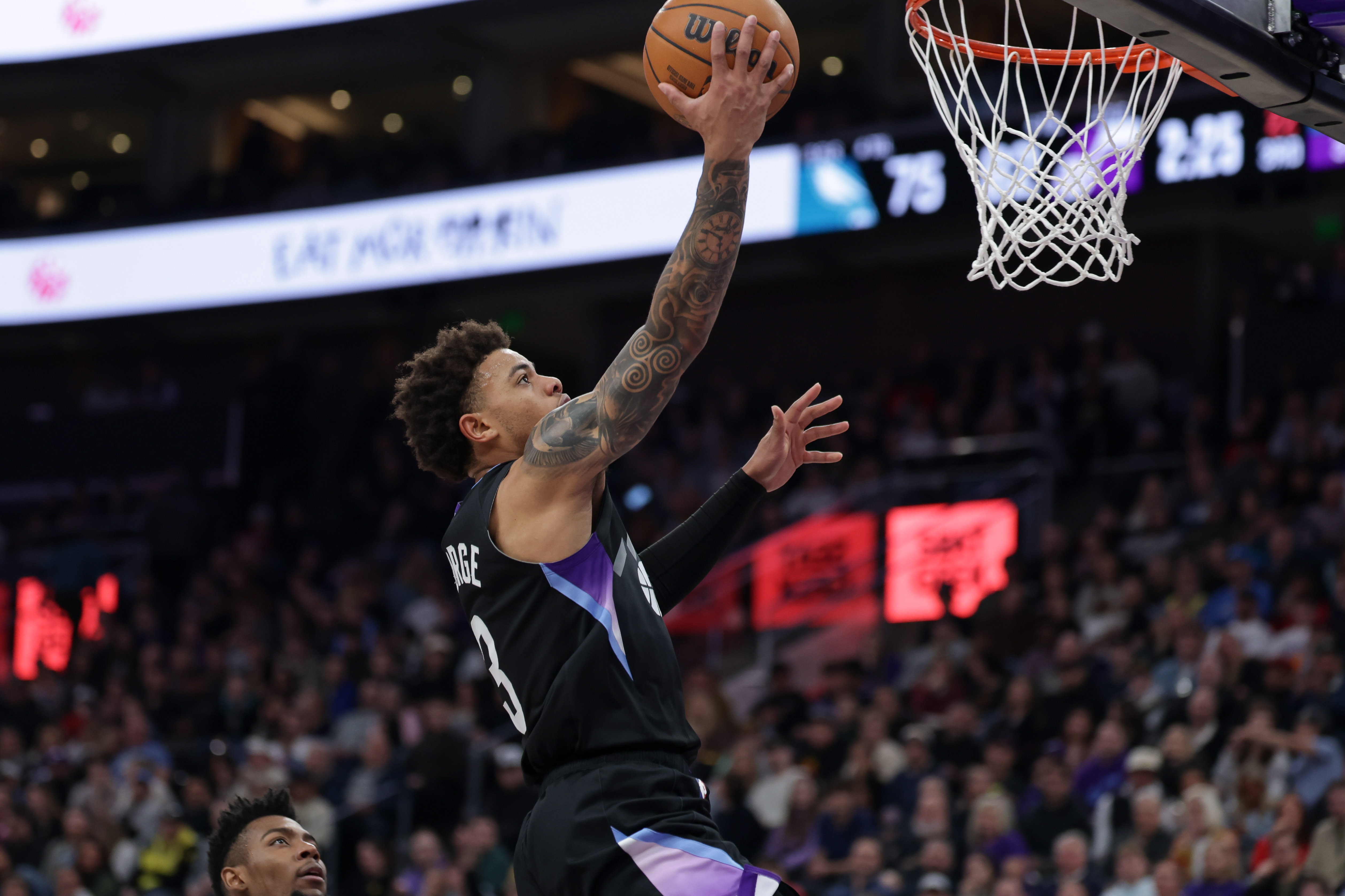 爵士球員基昂特-喬治本場(chǎng)比賽表現(xiàn)十分全面,就是失誤稍微多了點(diǎn),最后關(guān)頭他還命中一記高難度三分,可惜最終還是未能幫助球隊(duì)上演奇跡。