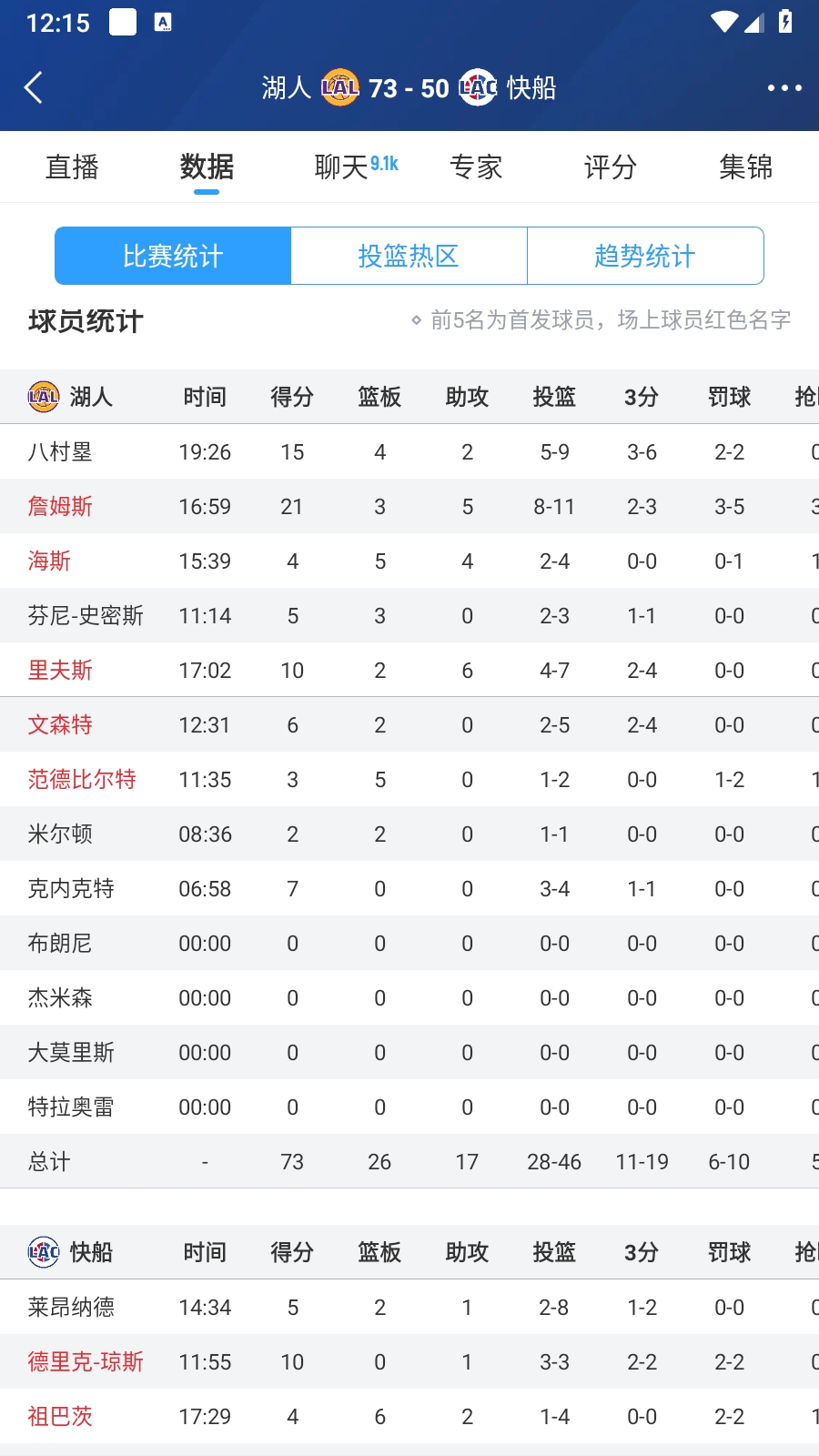 - 詹姆斯老當(dāng)益壯21分&湖人全民皆兵 湖人半場(chǎng)轟73分領(lǐng)先快船23分