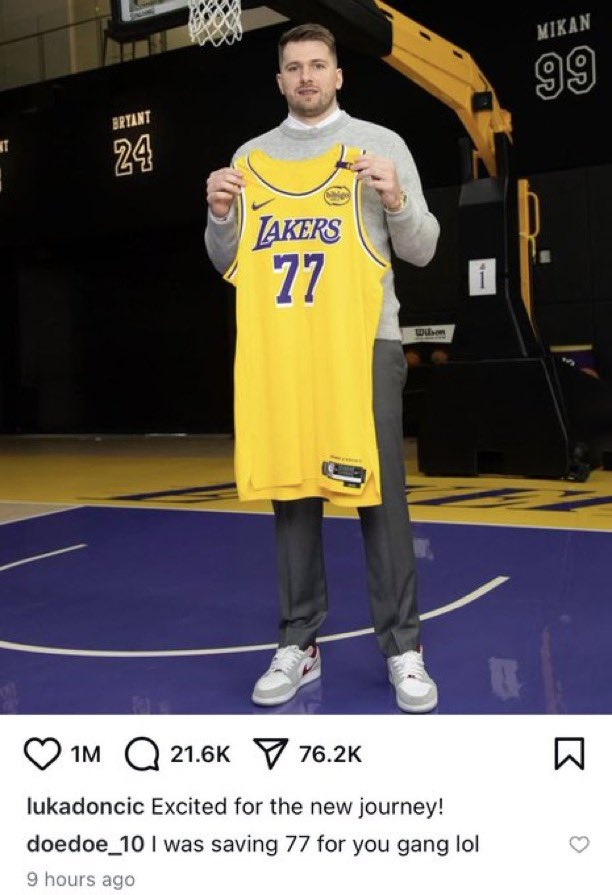 隨后到了昨天,東契奇曬出了自己手持湖人球衣的圖片,芬尼-史密斯在其底下評(píng)論:兄弟,77號(hào)是我留著給你來(lái)穿的,哈哈哈。