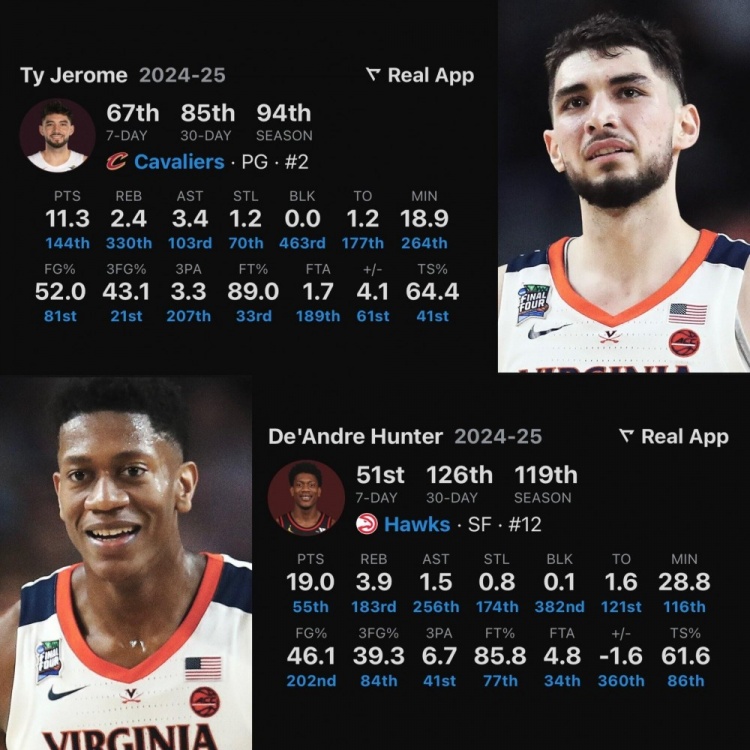 至此,亨特和泰-杰羅姆兩人在騎士重聚,兩人是效力于弗吉尼亞大學(xué)時期的隊友,并在2019年贏得NCAA冠軍。