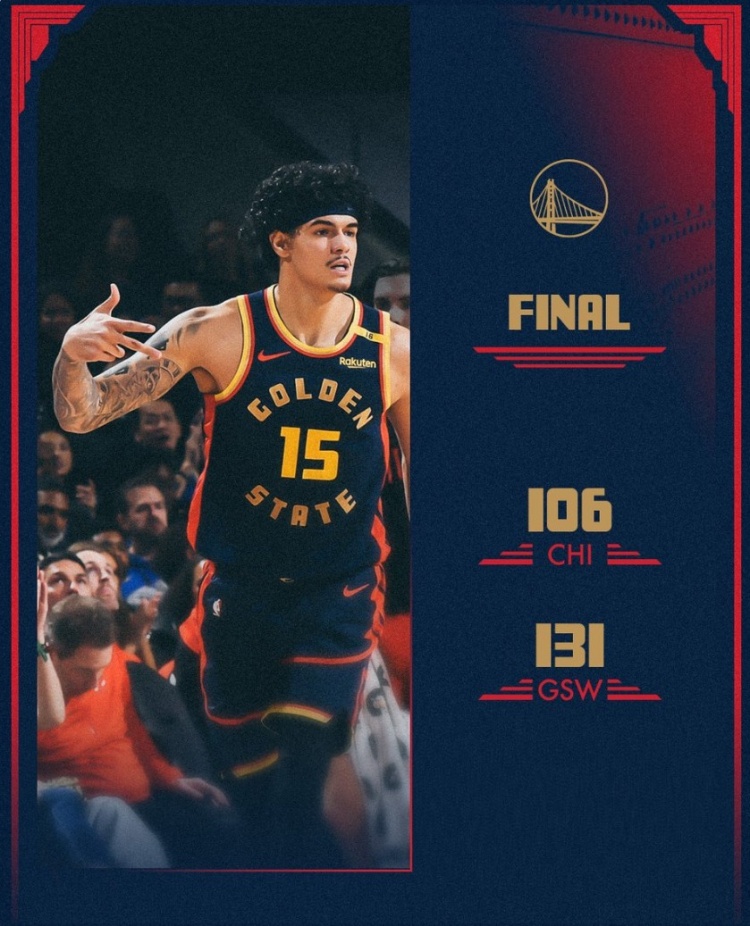 1月24日訊 NBA常規(guī)賽,勇士131-106戰(zhàn)勝公牛。