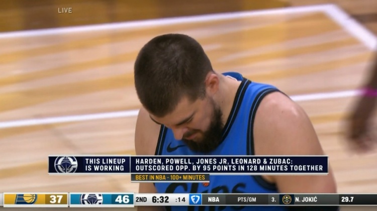 快船卡&登&祖&鮑&瓊五人組出場(chǎng)128分鐘凈勝95分 聯(lián)盟最佳