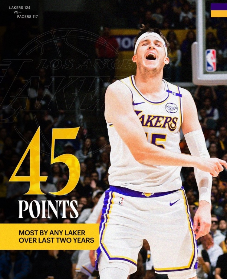 據(jù)統(tǒng)計(jì),45分是近兩年湖人球員單場(chǎng)最高分(詹姆斯最高42分、濃眉最高也是42分)。