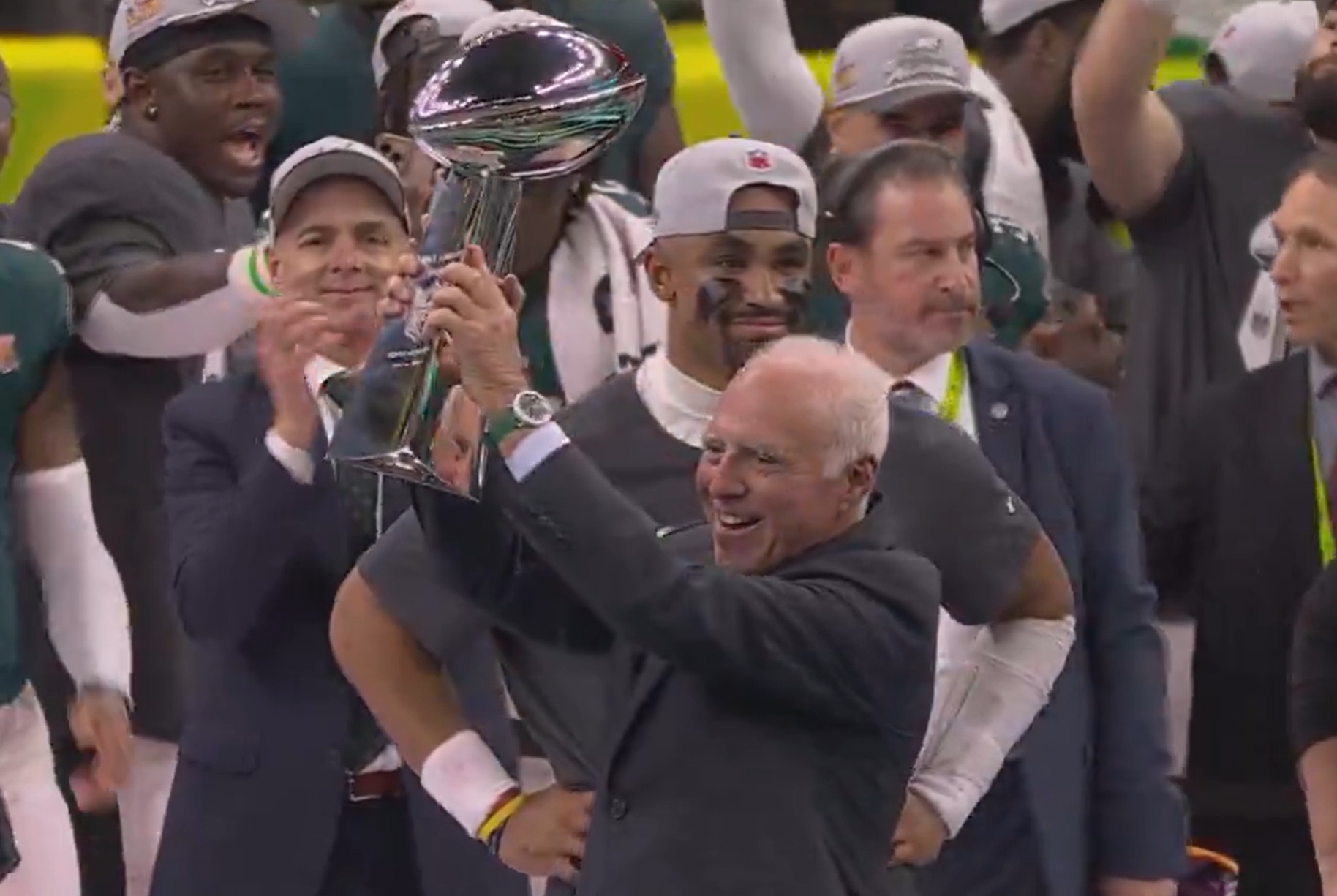 02月10日訊 費(fèi)城老鷹40-22擊敗堪薩斯酋長(zhǎng),奪得隊(duì)史第二個(gè)超級(jí)碗冠軍。費(fèi)城老鷹老板杰弗里-盧里現(xiàn)場(chǎng)觀戰(zhàn)并和球員一起慶祝奪冠。