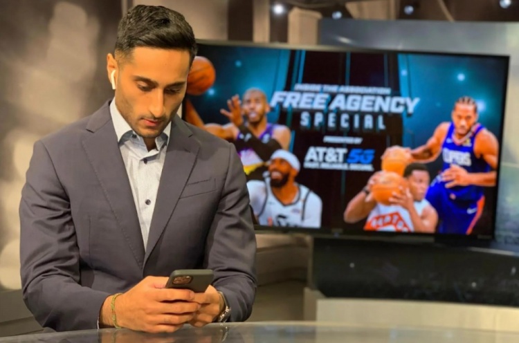 一陣響亮的鈴聲過后,沙姆斯-查拉尼亞(Shams Charania)第9次放下手中的面包片,為了避免滿手果醬弄臟屏幕,他用小拇指打字,回復某位NBA總經理的消息。