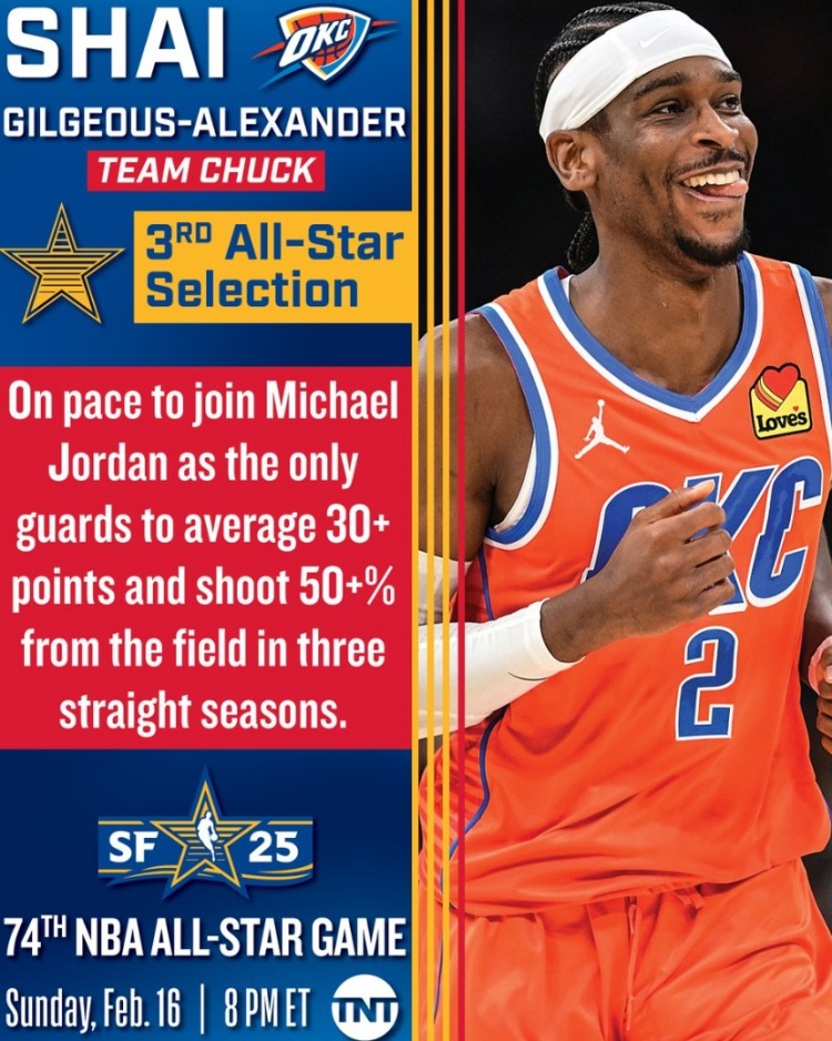 據(jù)統(tǒng)計,亞歷山大有望成為NBA歷史上第二位連續(xù)三個賽季場均得分30+、且命中率50%+的后衛(wèi),第一個是喬丹。