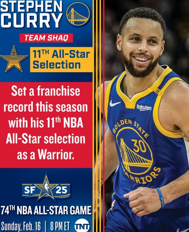 據(jù)統(tǒng)計,這是庫里生涯第11次入選全明星, 超越保羅-阿里金,創(chuàng)勇士隊史新紀錄。