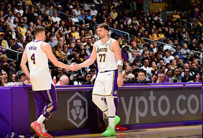 不過,好在本場比賽,湖人在東契奇和詹姆斯的帶領(lǐng)下大勝國王。本場比賽,東契奇出戰(zhàn)33分鐘,23投11中,三分14投5中、罰球8中7,砍下34分5籃板7助攻3搶斷1蓋帽。但也出現(xiàn)了5次失誤。