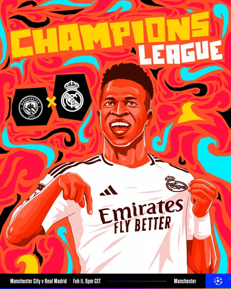 皇馬官方社媒發(fā)布了為此役制作的海報(bào),維尼修斯的漫畫形象出鏡。