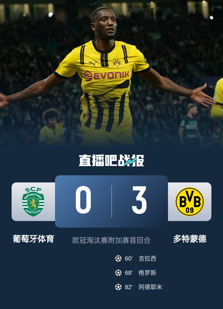 吉拉西、阿德耶米破門(mén),多特蒙德客場(chǎng)3-0擊敗葡萄牙體育。