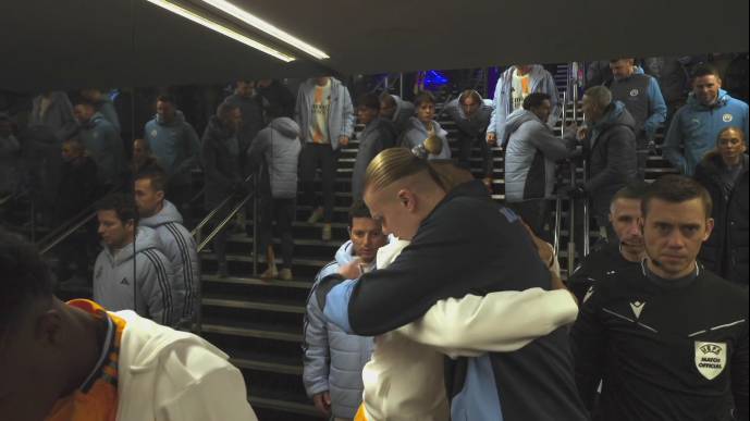 王見(jiàn)王!哈蘭德和姆巴佩賽前在球迷通道擁抱