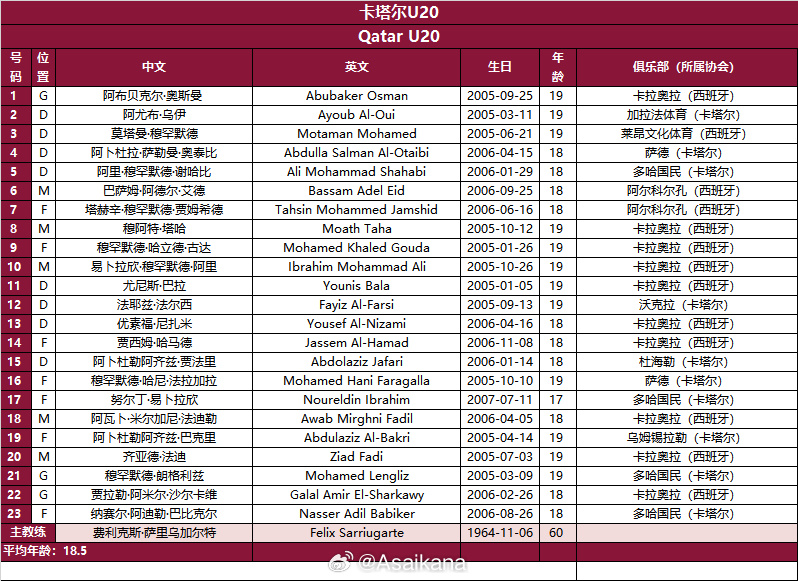 U20國青主帥是久爾杰維奇,球隊陣容以05/06年齡段球員組成,不少球員已經(jīng)在所屬俱樂部嶄露頭角,比如王鈺棟、劉誠宇、朱鵬宇、毛偉杰、張志雄、杜月徵。而今晚的對手卡塔爾陣中,23人名單中有13人留洋西班牙。