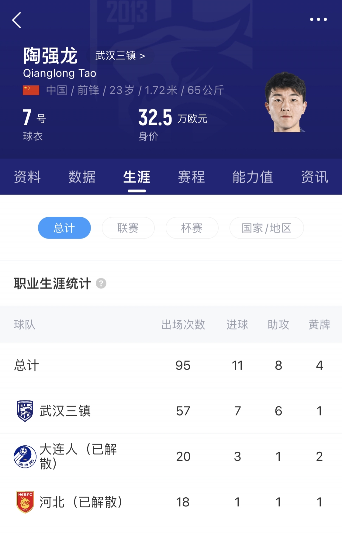 陶強(qiáng)龍于2001年11月20日出生在安徽,在場(chǎng)上司職前鋒。