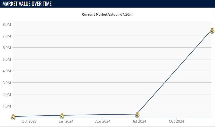 勞爾-阿森西奧本賽季才進(jìn)入皇馬一線隊(duì),至今代表球隊(duì)出場(chǎng)21次,在西甲送出過(guò)一記助攻。值得一提的是,這位小將在連續(xù)兩場(chǎng)硬仗中都首發(fā)出場(chǎng),球隊(duì)1-1戰(zhàn)平馬競(jìng)、3-2戰(zhàn)勝曼城。目前球員德轉(zhuǎn)身價(jià)僅為750萬(wàn)歐元。